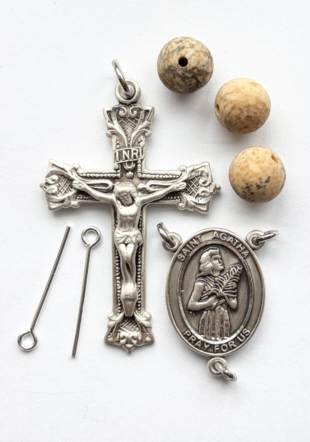 K591 Sterling Silver Miraculous Rosary Kit with 8mm gemstone sodalite beads.